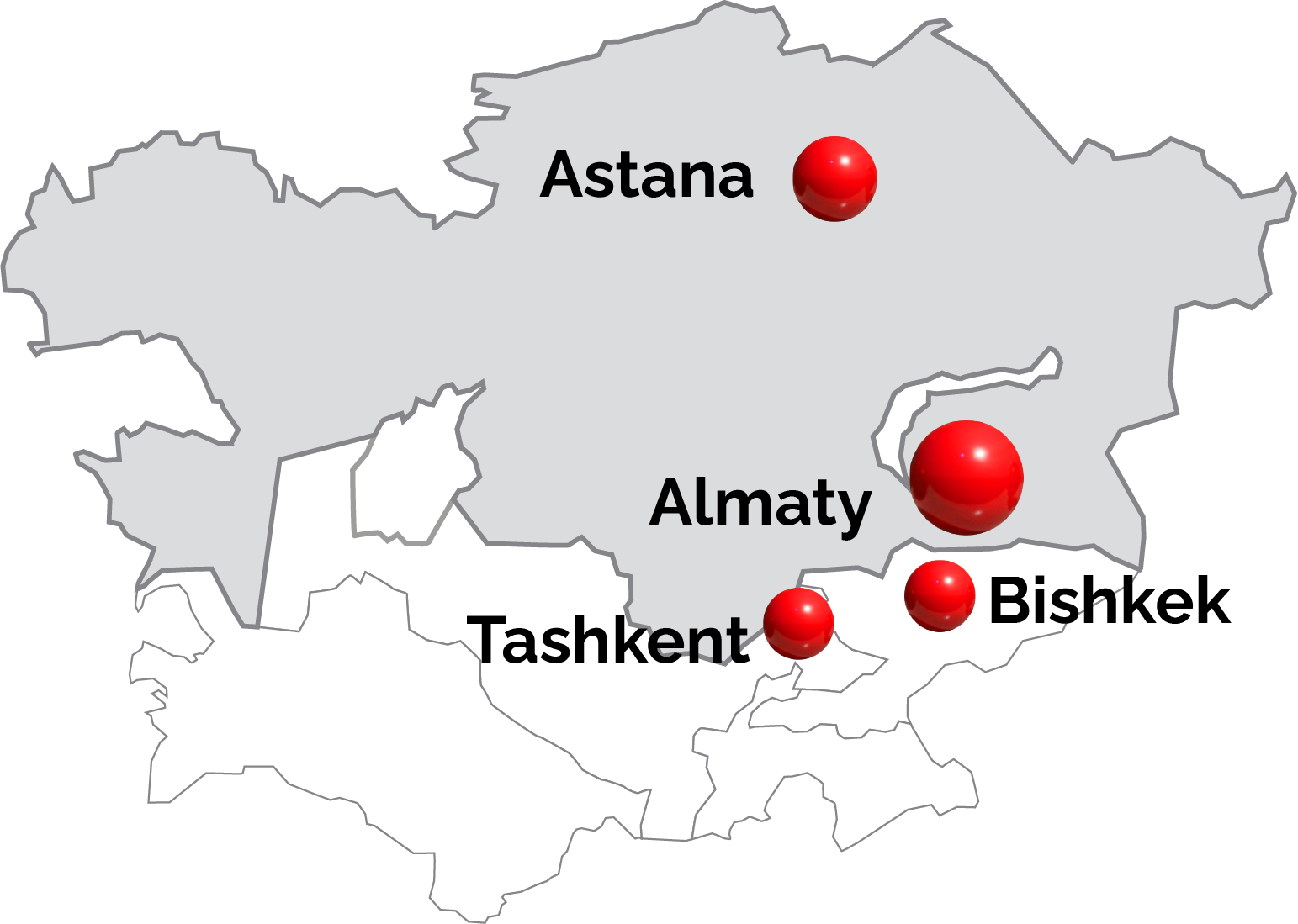 Offices in 3 countries: Kazakhstan, Uzbekistan, Kyrgyzstan.