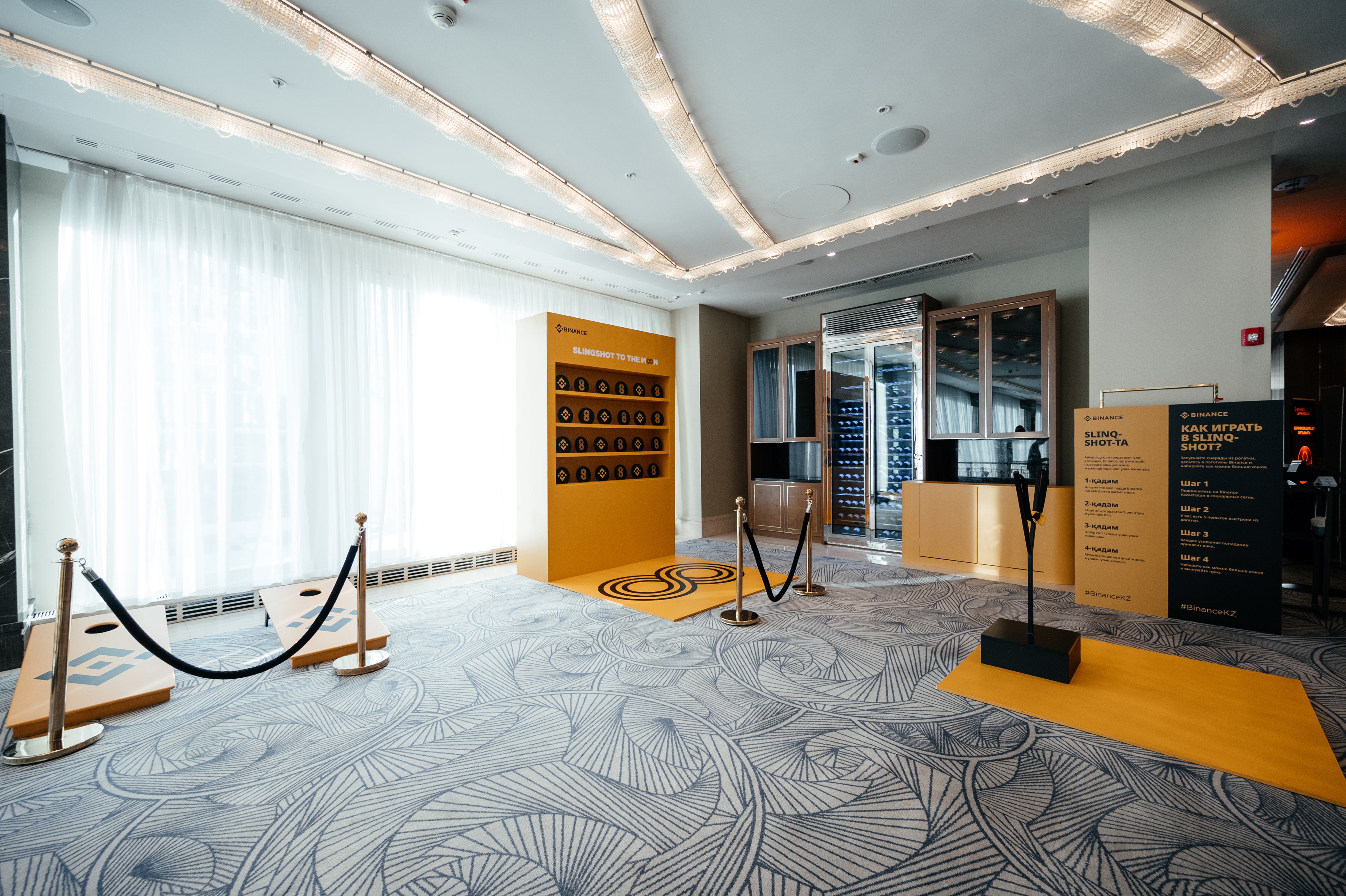 Each venue was completely redesigned in line with the Binance brand format — large-scale staging with 18×4.5 m LED screens, branded registration and interactive zones, and immersive technological activities for guests.